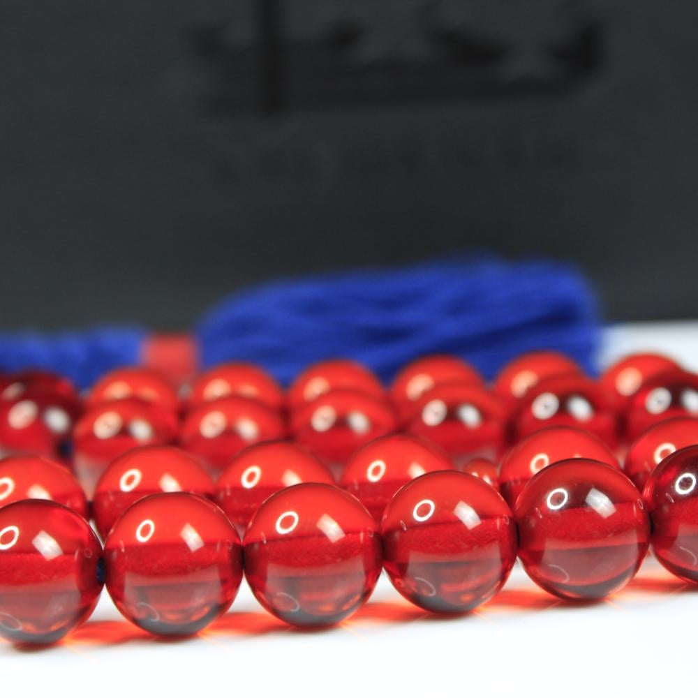 سبحة من الفاتوران الاحمر الشفاف بخرز دائري كبير
