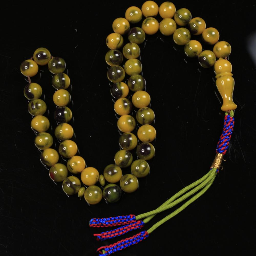 مسباح مسكي بدرجات تجمع الأخضر الهادئ والزيتي العميق ولمعان راقٍ يمنح عمقًا وهدوءًا بصريًا. خراطة يدوية متقنة وحبّات دائرية بانسيابية مريحة؛ قطعة أنيقة لعشّاق السبح وتليق بالإهداء والاقتناء.