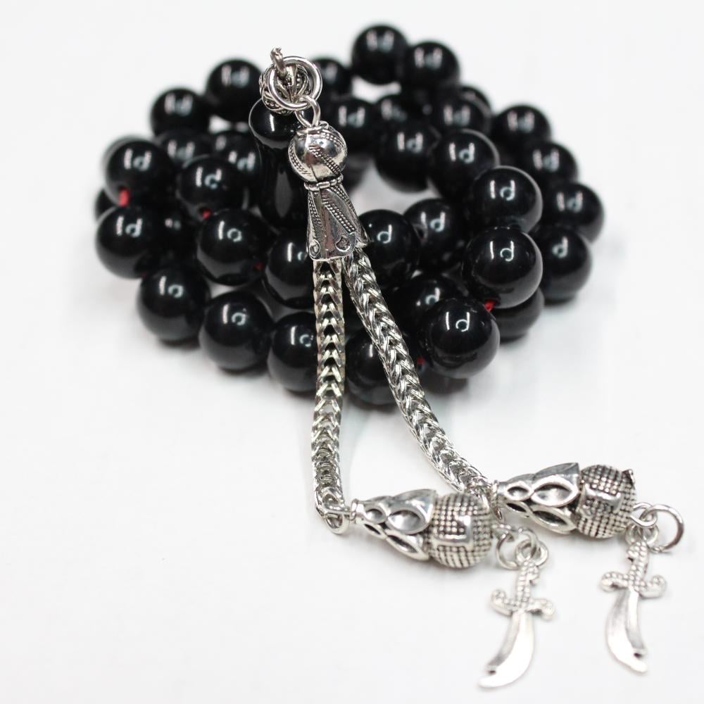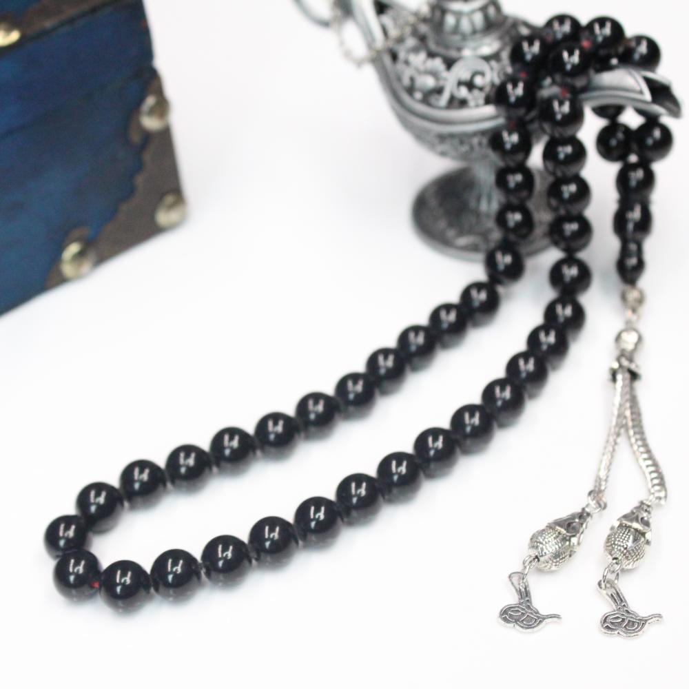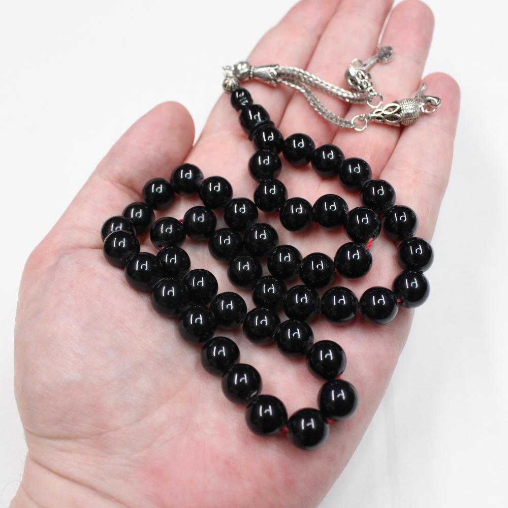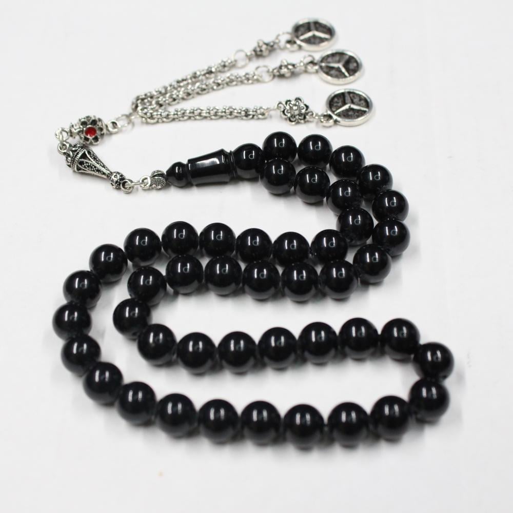 سبحة مسكي سوداء بحبات دائرية وشرابة كلاسيكية