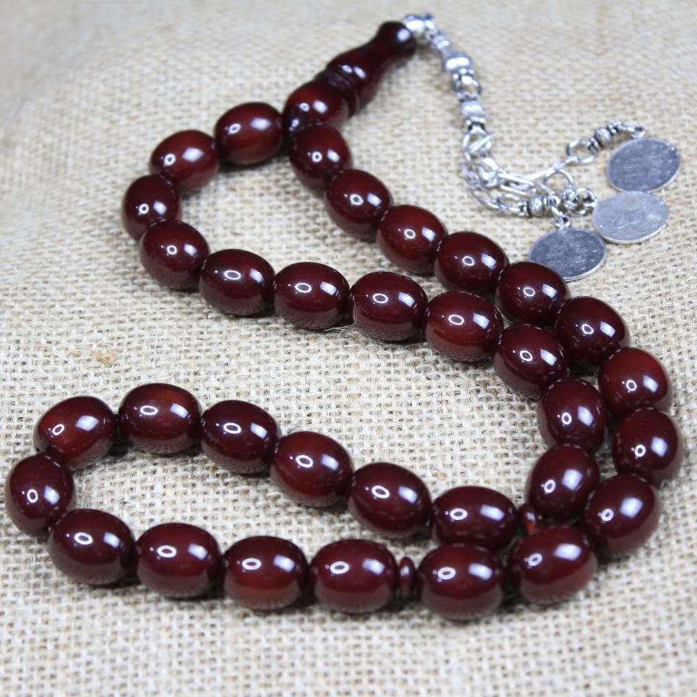 مسباح مسكي عسلي ممزوج بالبني معتقة بلمسة أثرية و خرز بيضوي كبير