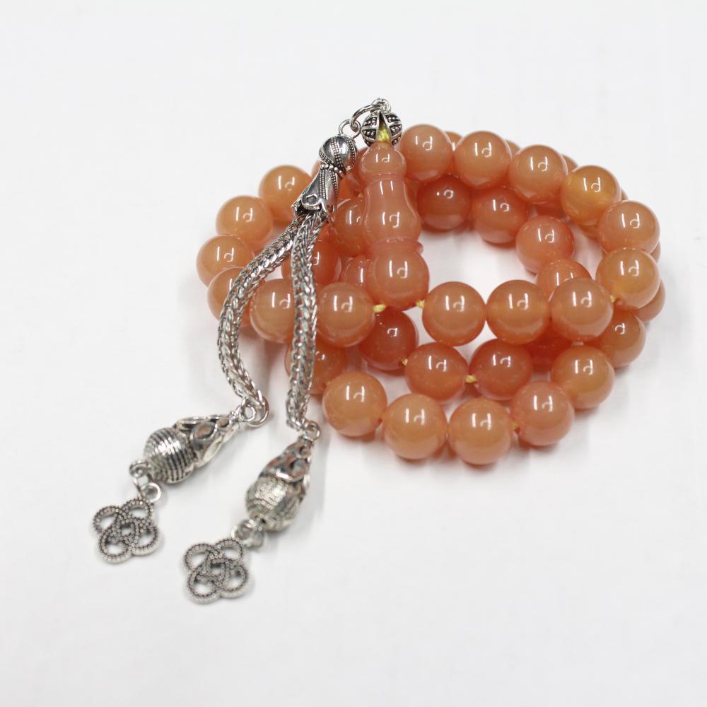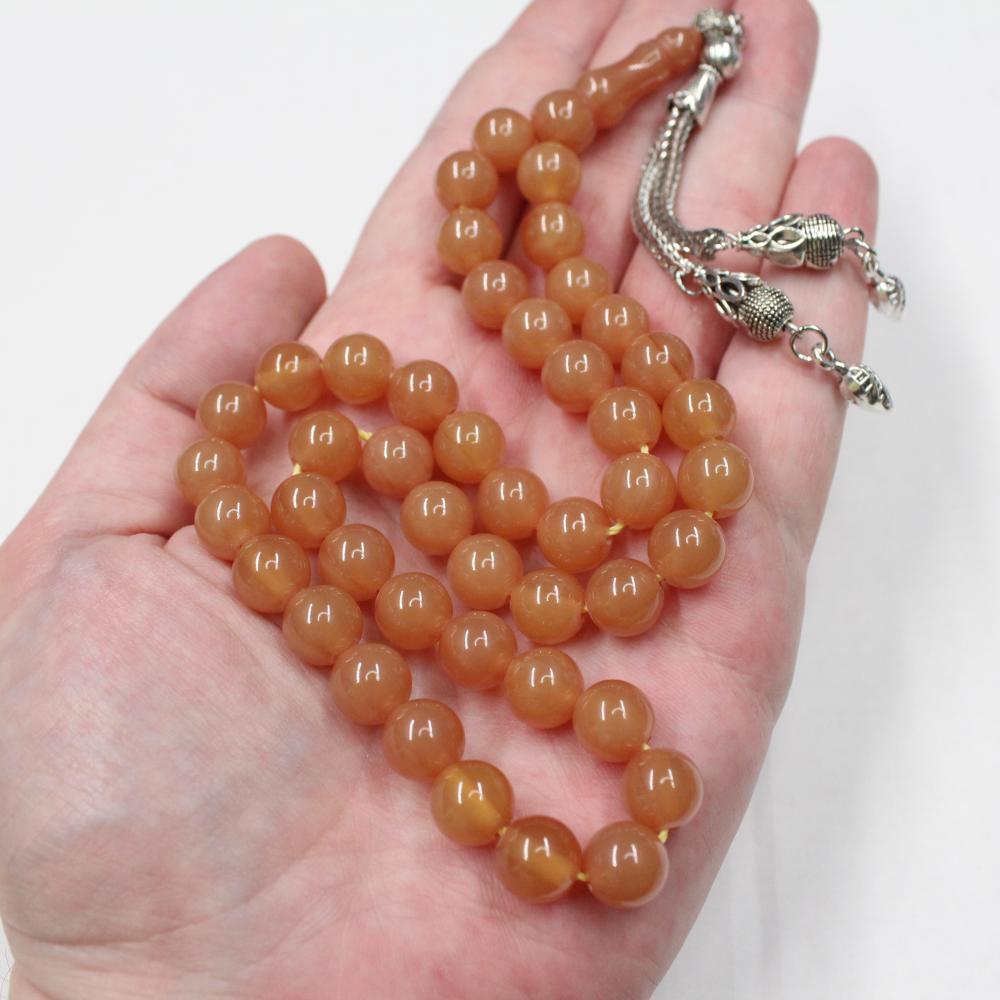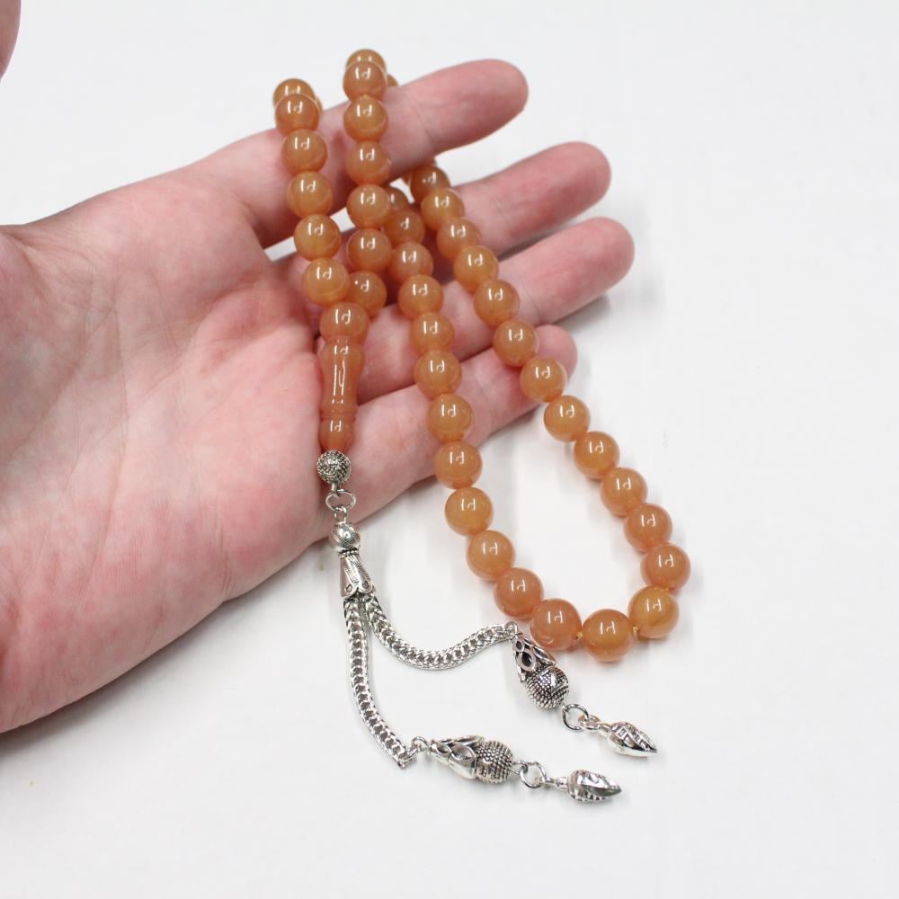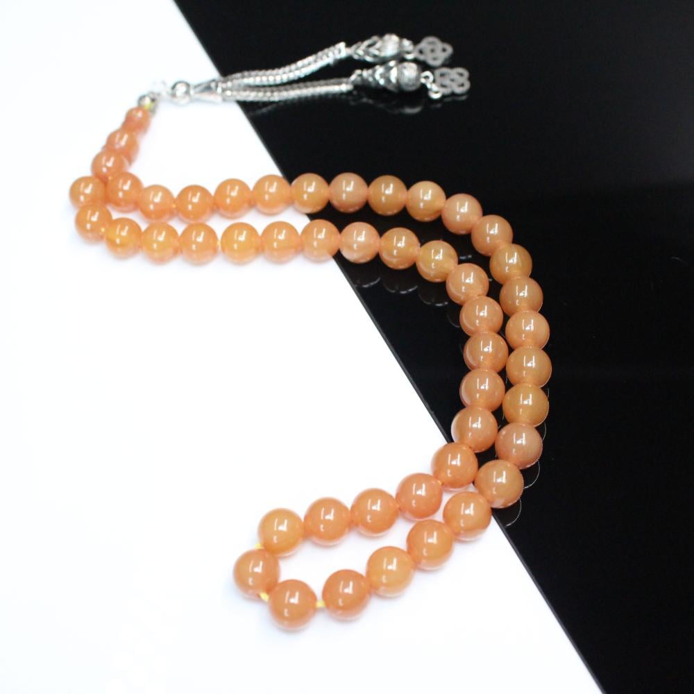 مسباح مسكي بلون عسلي بحبات دائرية وشرابة تراثية