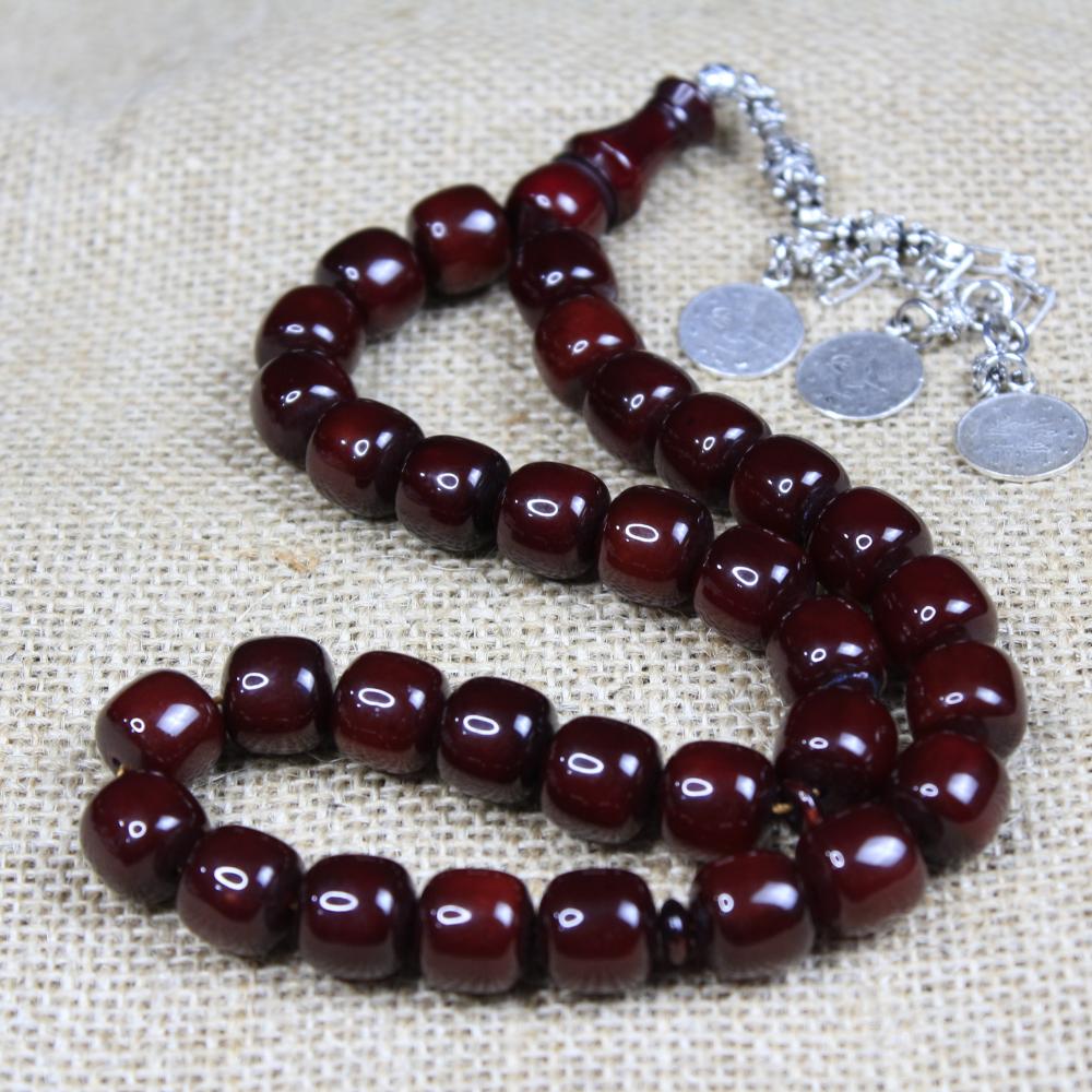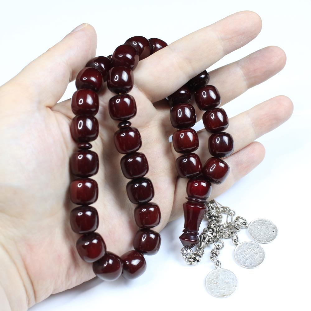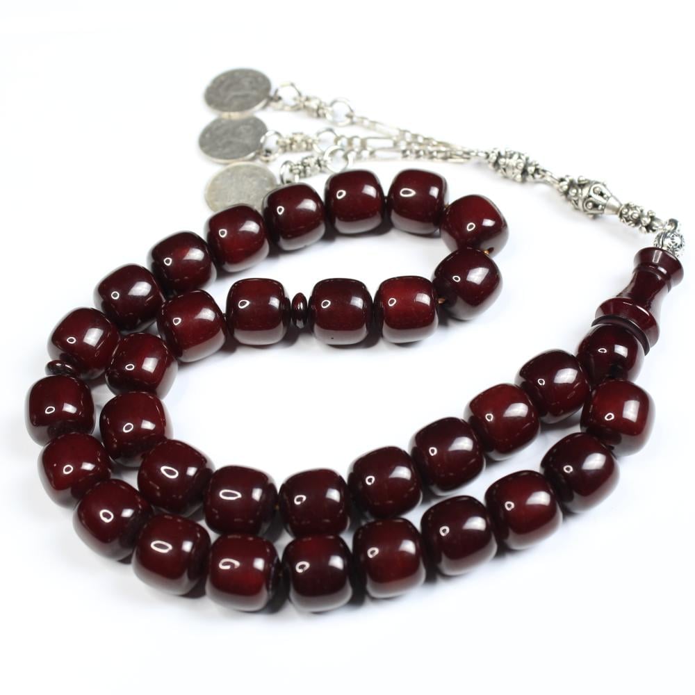 مسباح مسكي كرزي غامق معتقة بلمسة أثرية وخرز اسطواني كبير