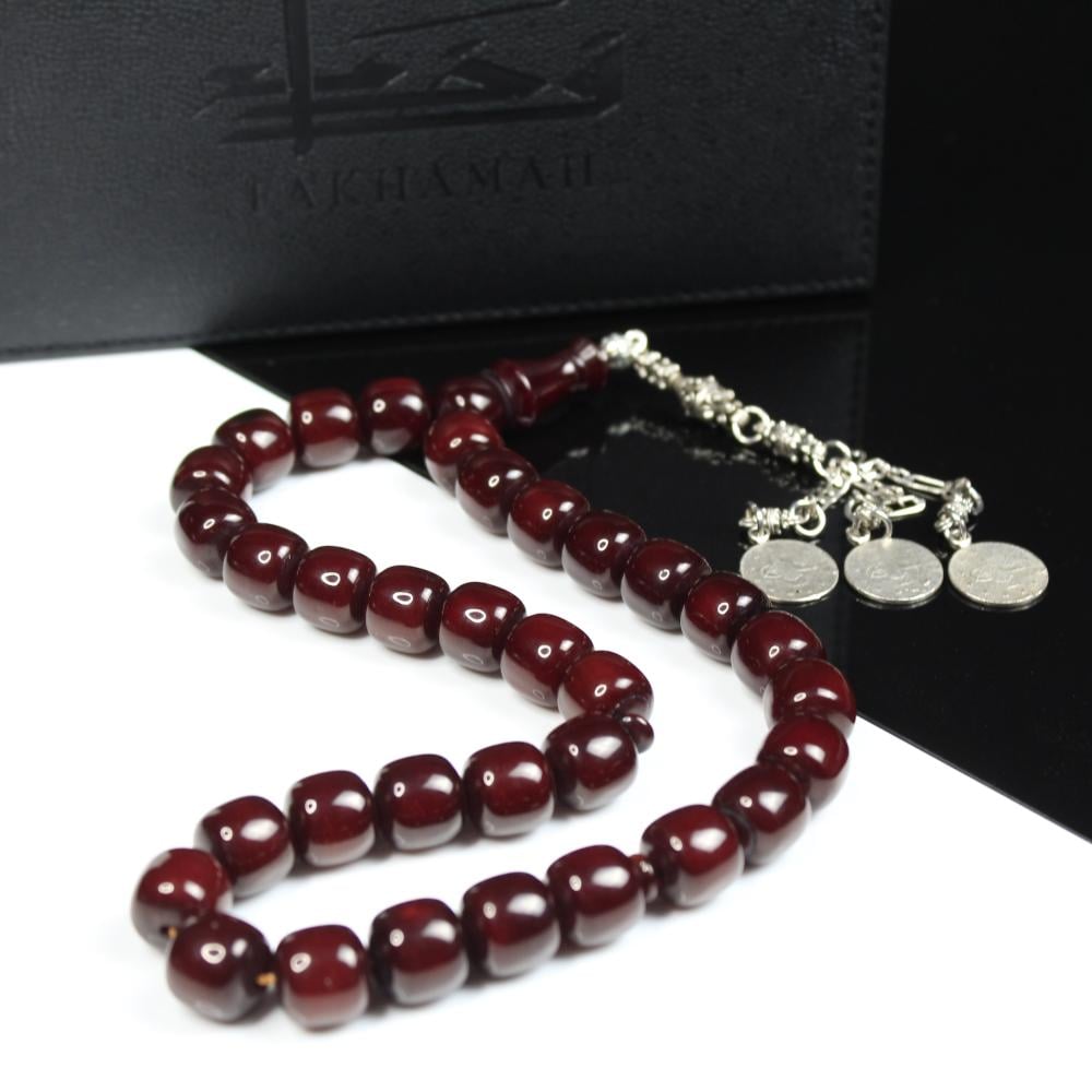 سبحة مسكي راقية بلون كرزي غامق , تعكس جمال الفخامة والأصالة. تتميز حباتها الاسطوانية بلمسة معتقة ناعمة وعددها 33 خرزة، مما يجعلها مثالية للاستخدام اليومي أو كهدية راقية. الشرابة المصنوعة بدقة من مزيج الانتيمون والمعادن بتصميم يحاكي العملات المعدنية القديمة تضيف بعداً تاريخياً للسبحة. الخيط المصنوع من البروبلين القوي والمجدول يضمن المتانة العالية والتحمل لفترات طويلة. تأتي السبحة في أنيقة ، لتكون الهدية الأمثل لكل مناسبة.