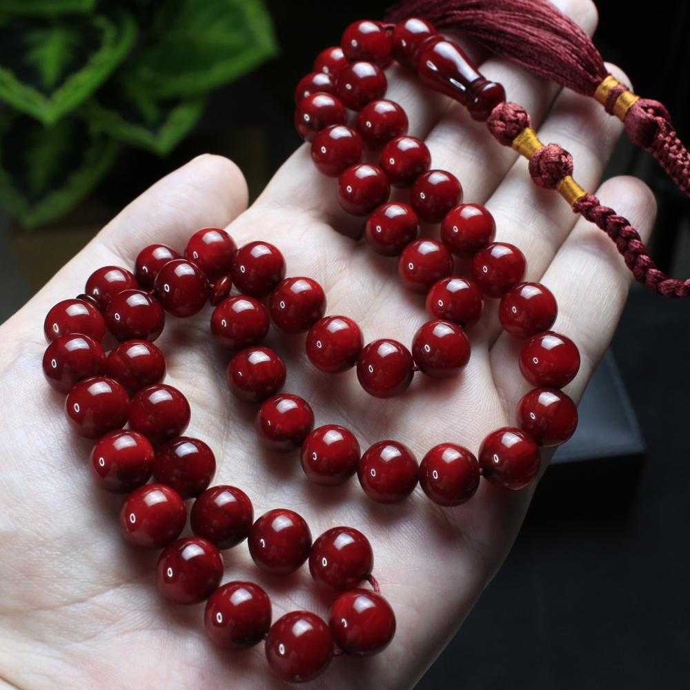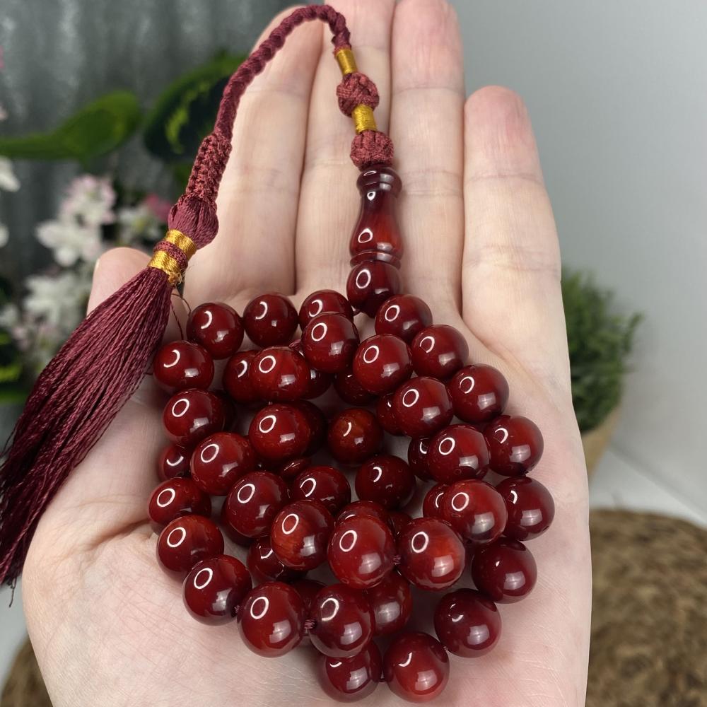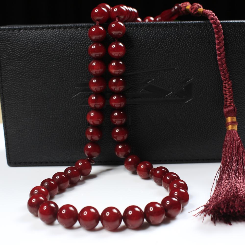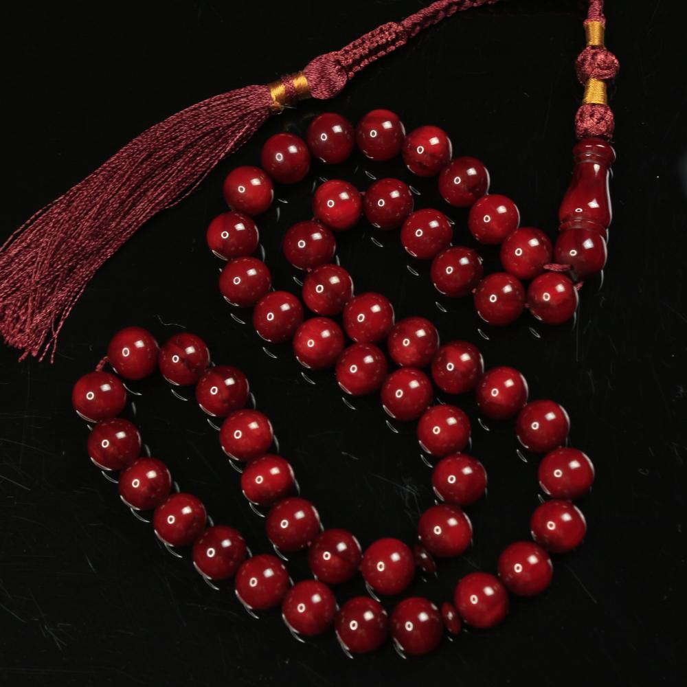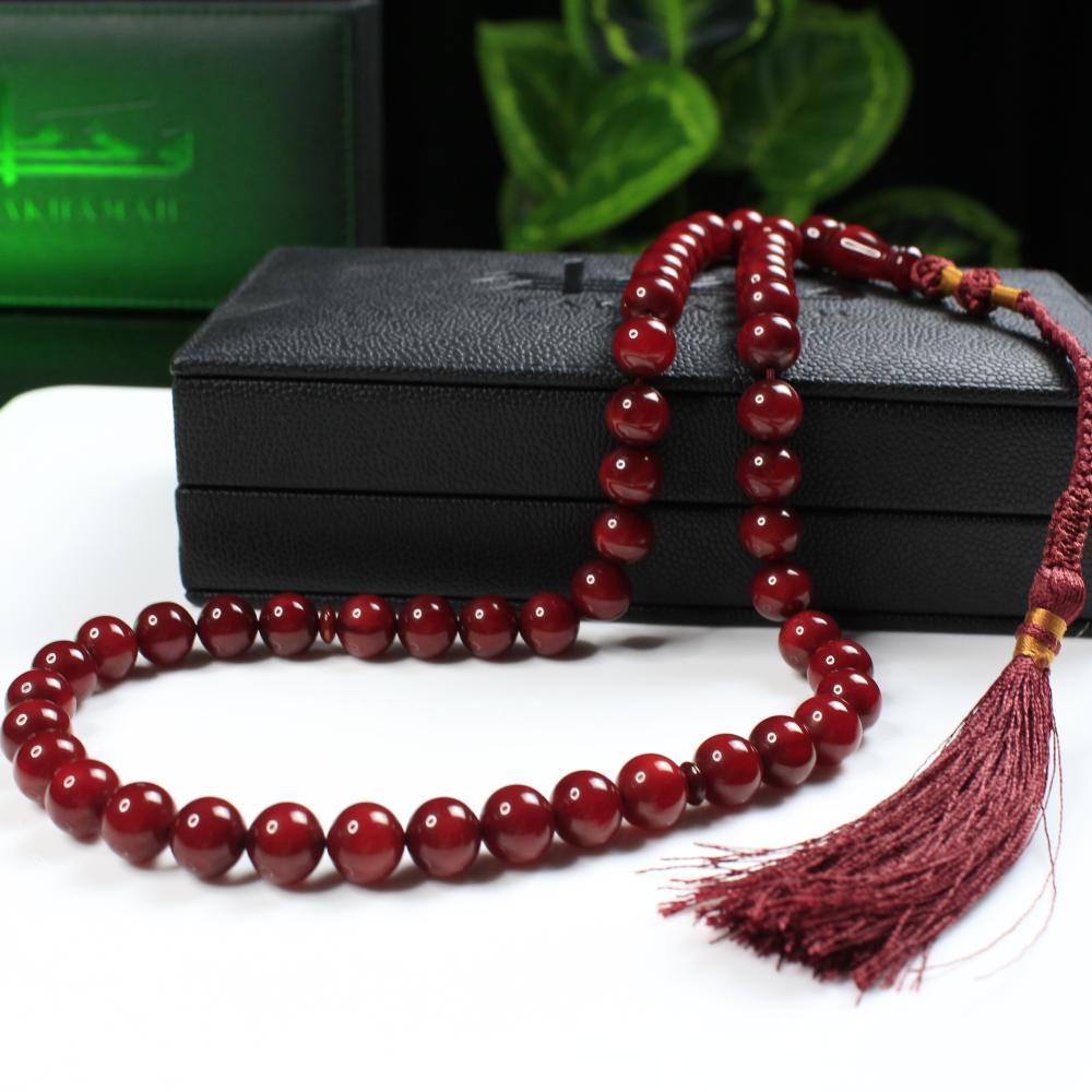 مسباح مسكي بدرجة كرزية ممزوجة بالبني والخوخي وبشفافية خفيفة تحت الضوء ولمعان راقٍ يمنح إحساس عمق وسكينة. خراطة يدوية دقيقة وانسيابية مريحة؛ قطعة أنيقة لعشّاق السبح تليق بالإهداء والاقتناء.