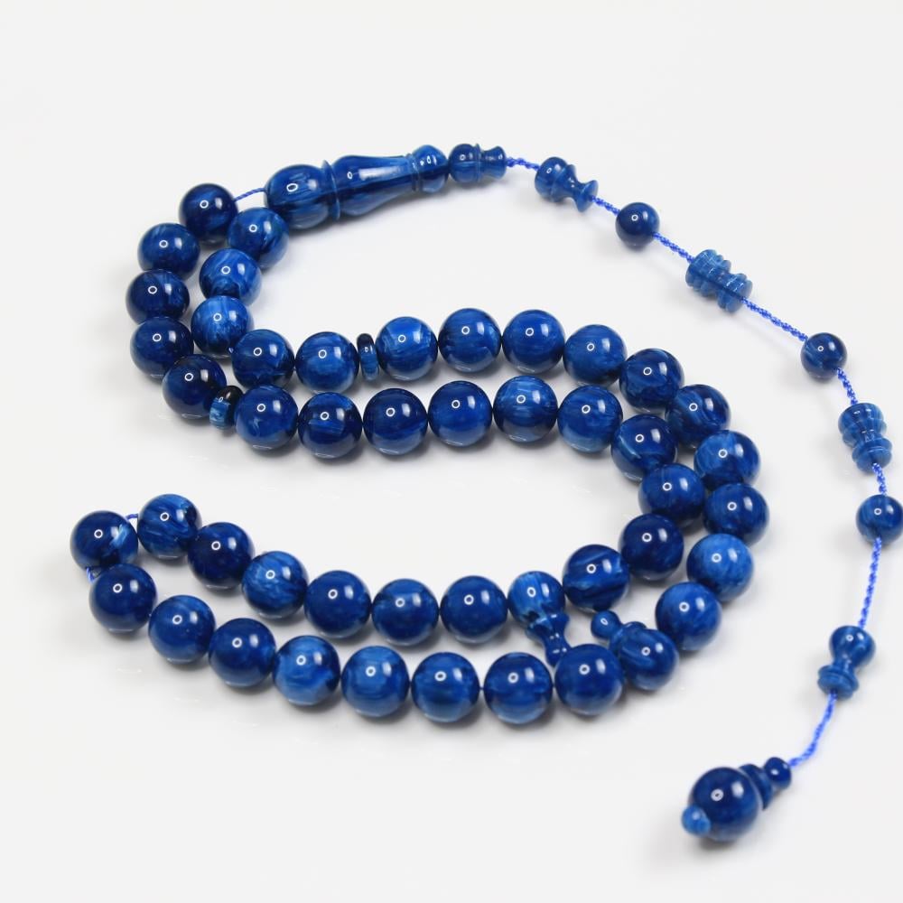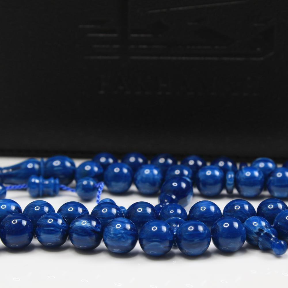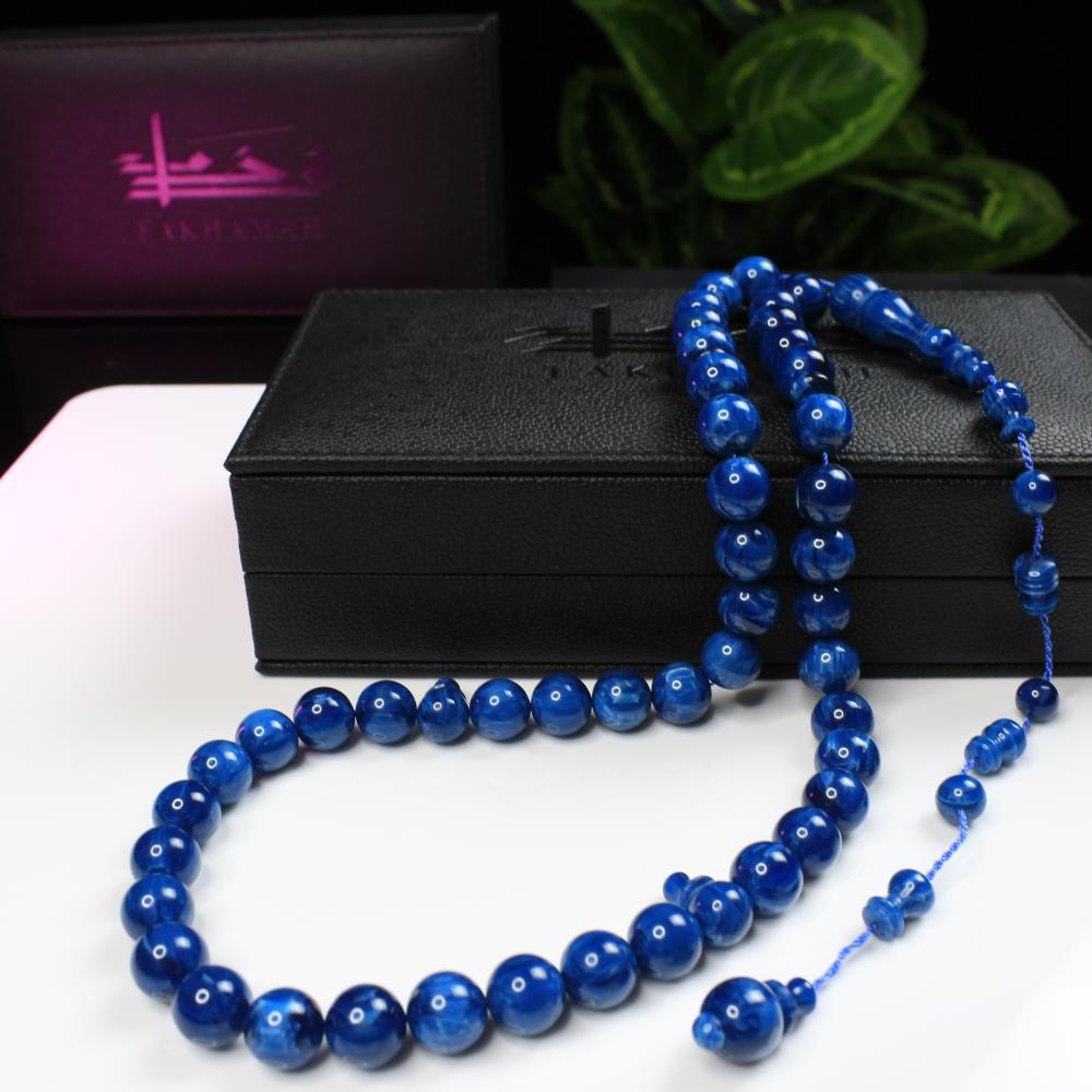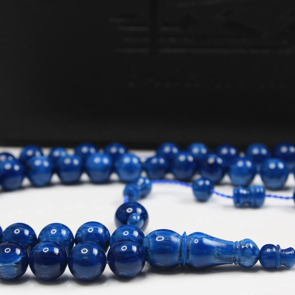 مسباح مسكي بدرجة أزرق بحري متدرجة ولمعان راقٍ يمنح عمقًا وهدوءًا بصريًا. خراطة يدوية دقيقة وانسيابية مريحة؛ قطعة أنيقة لعشّاق السبح وتناسب الإهداء والاقتناء.